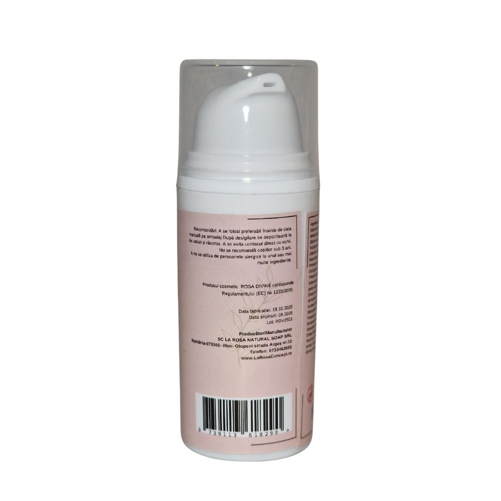Rosa Divine este o cremă de zi cu textură delicată, concepută să ofere hidratare profundă, regenerare celulară și protecție antioxidantă, pentru un ten vizibil mai neted, ferm și plin de vitalitate. Formula sa complexă se bazează pe ingrediente naturale atent selecționate — uleiuri, unturi vegetale, extracte botanice și compuși activi — astfel încât fiecare aplicare să devină un ritual de îngrijire completă. În plus, textura catifelată și capacitatea de absorbție ușoară o fac potrivită pentru utilizare zilnică, sub machiaj sau ca atare.